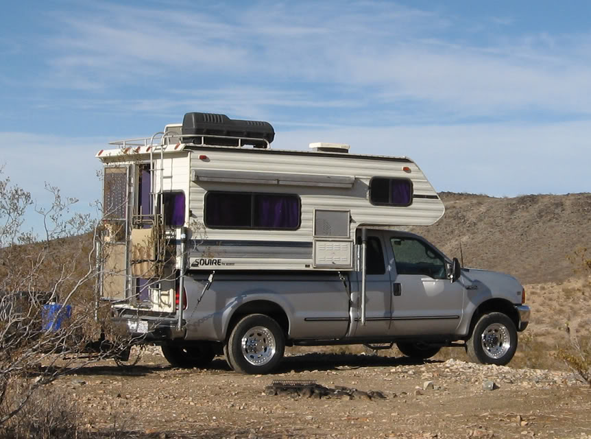 H. Extra Gear. This is the tricky part that requires careful thought and some estimation. Besides the truck and camper, there's additional hardware that is required to carry the camper safely. This additional hardware could weigh as much as 300 pounds depending on several factors. It's not uncommon for truck camper owners to suggest adding up to 1,000 pounds. But be careful and consider the weight of items C through G when planning the rest of the cargo. Example: 45 gallons of water weighs 375 pounds. Safety first! Avoid overloading. | Food-Clothing-Gear | |